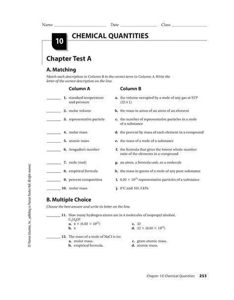 Download Chapter 10 Chemical Quantities Test A Answers Reader